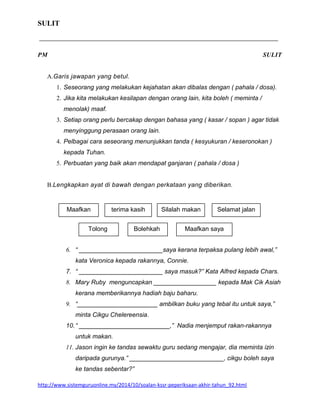 contoh soalan pendidikan moral tahun 4 kssr