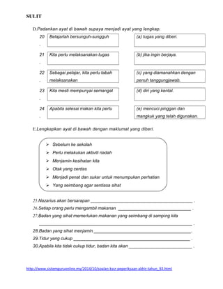 Contoh Soalan Peperiksaan Akhir Tahun Dan Jawapan Kssr Tahun 4