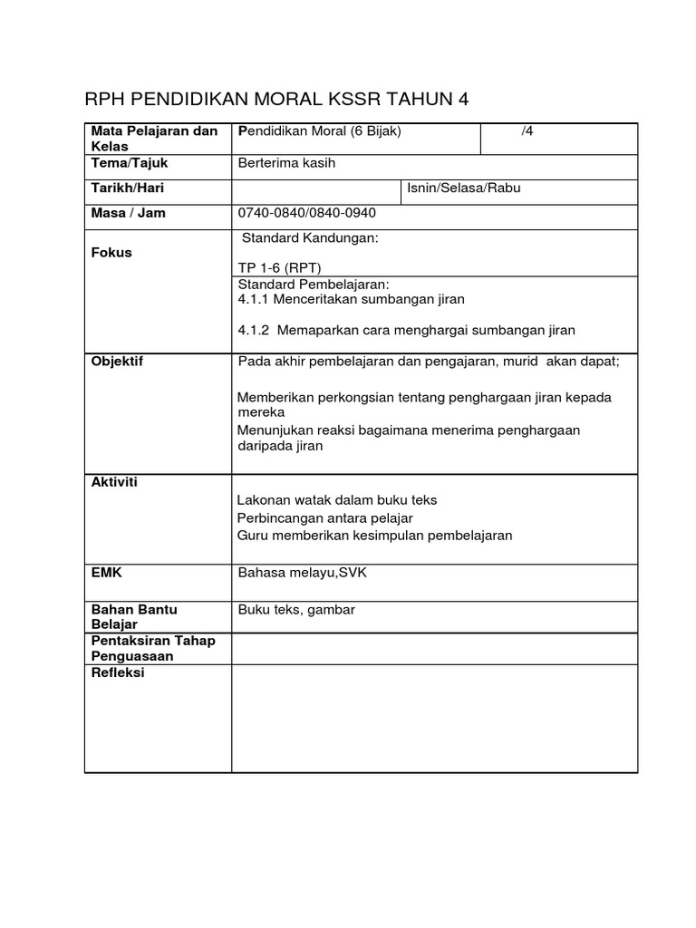 Rph Pendidikan Moral Kssr Tahun 4 Pdf